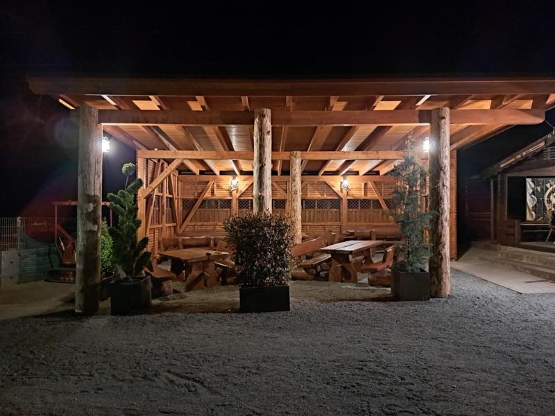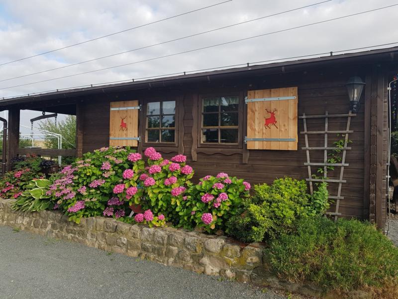 In diesem großen Blockhaus mit Veranda können Sie Feierlichkeiten jeder Art durchführen.